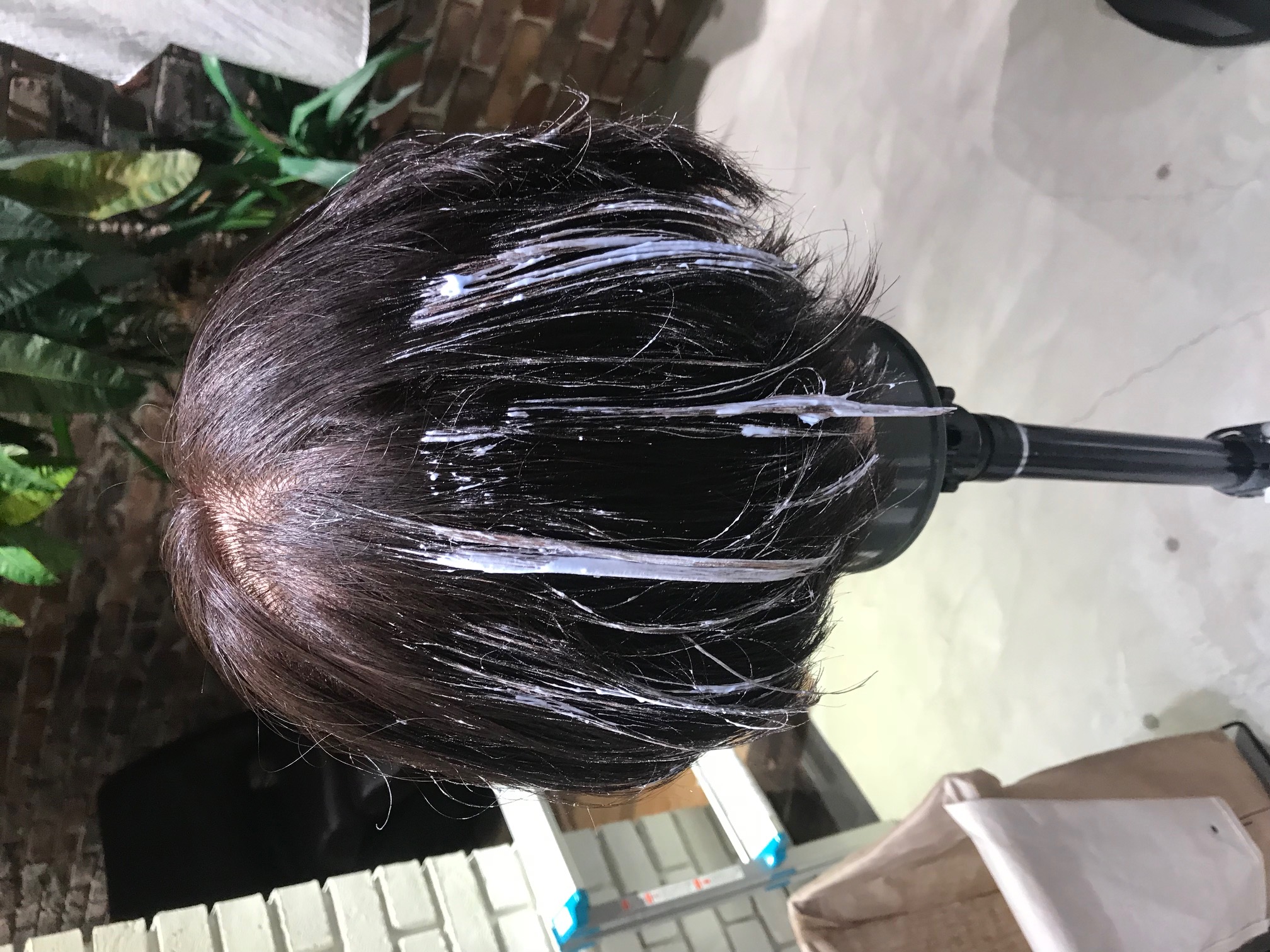 本日は、ブリーチを使用した明るめのヘアカラーの