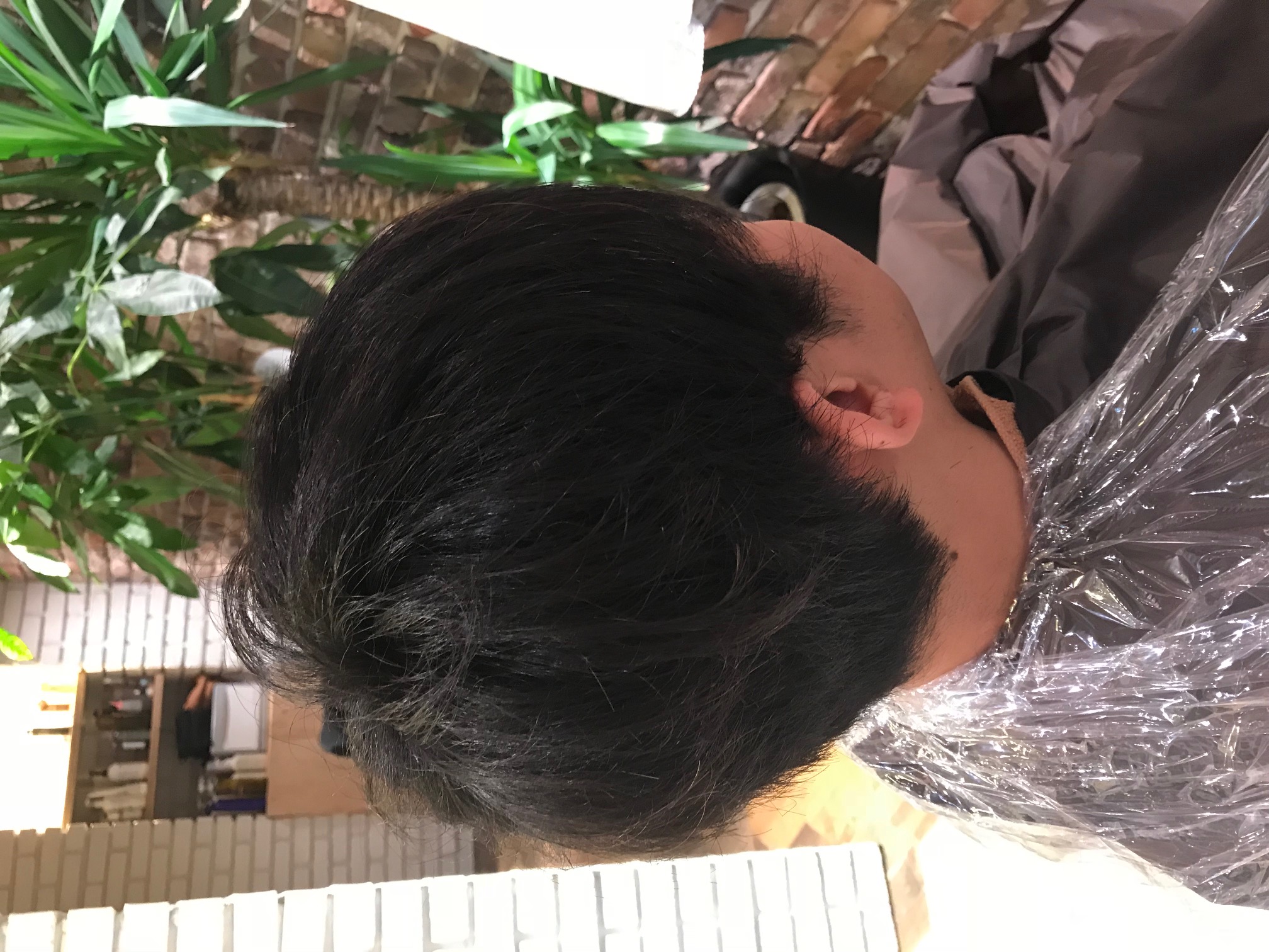 染める前は、全く染めていない黒髮の状態です。