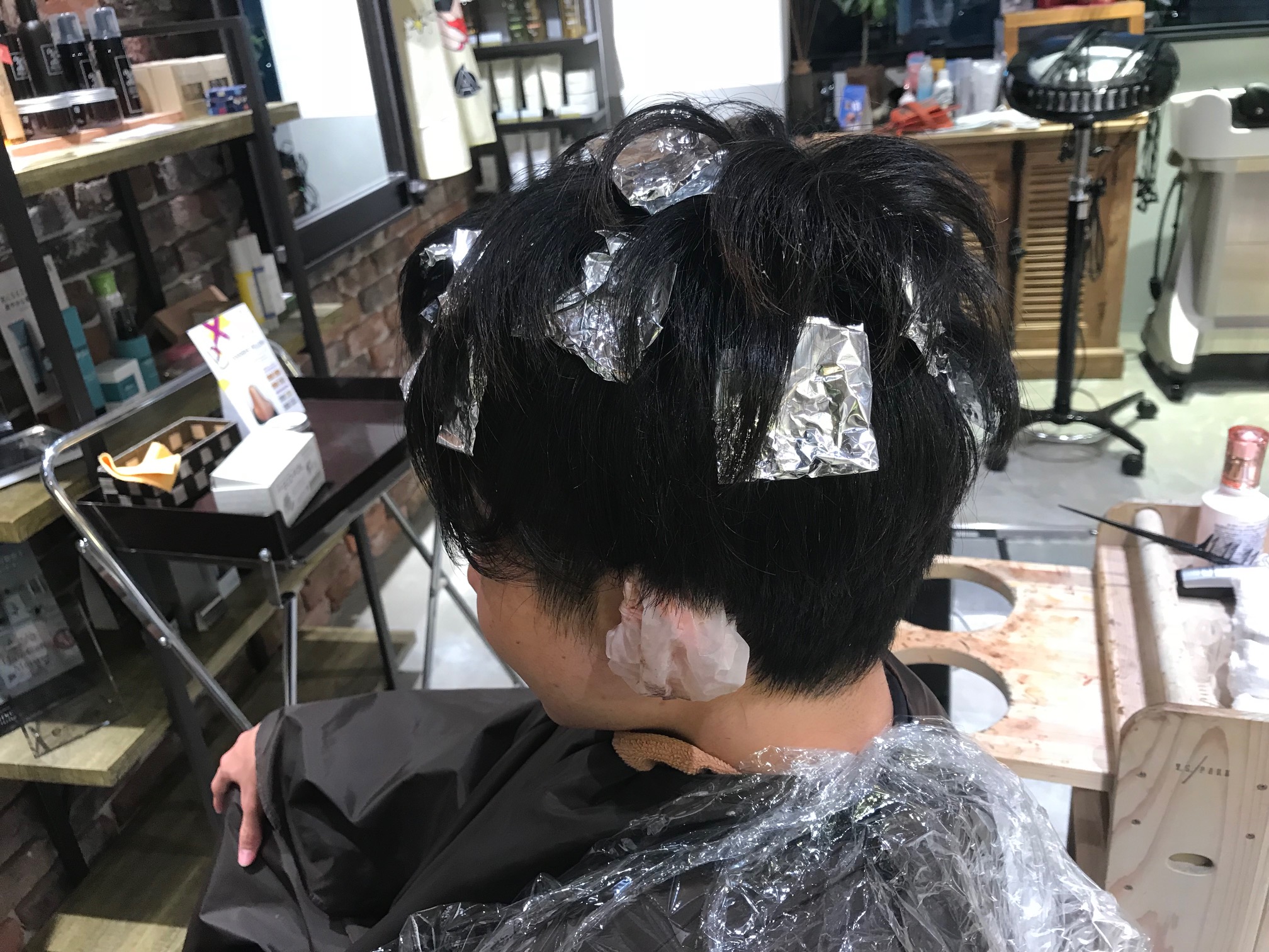 ちなみに今回は、アルミホイルで明るい毛束を13箇所入れまして